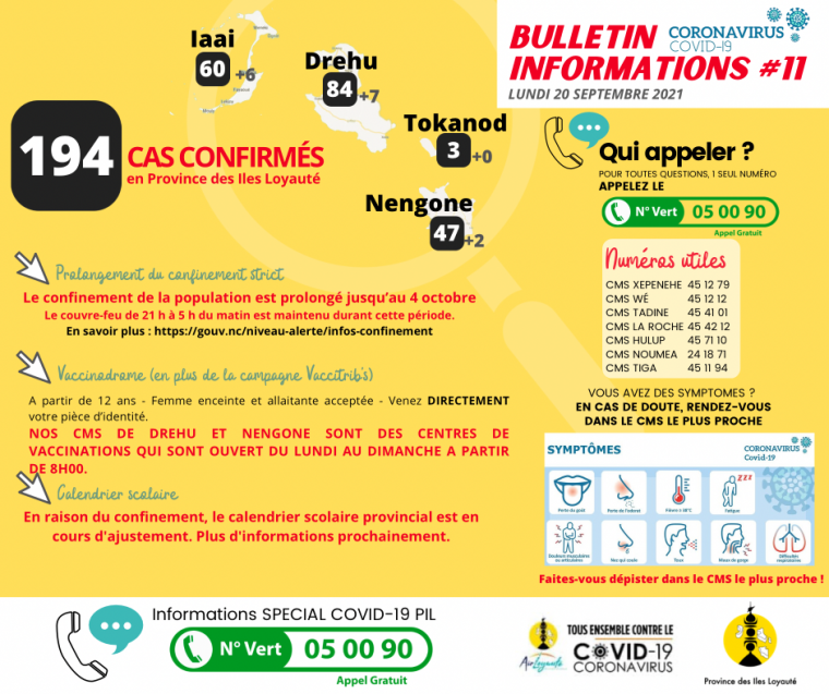 ➡️ 194 cas confirmés sur toute la Province des Iles dont 1 décès sur Maré