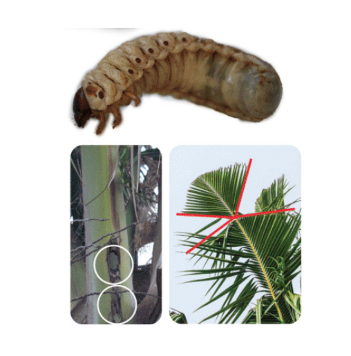 Le scarabée rhinocéros du cocotier s’attaque aux cocotiers, au palmier et à d’autres espèces locales essentielles pour l’économie, l’environnement et la culture. Les dégâts peuvent aller jusqu’à la mort de l’arbre.