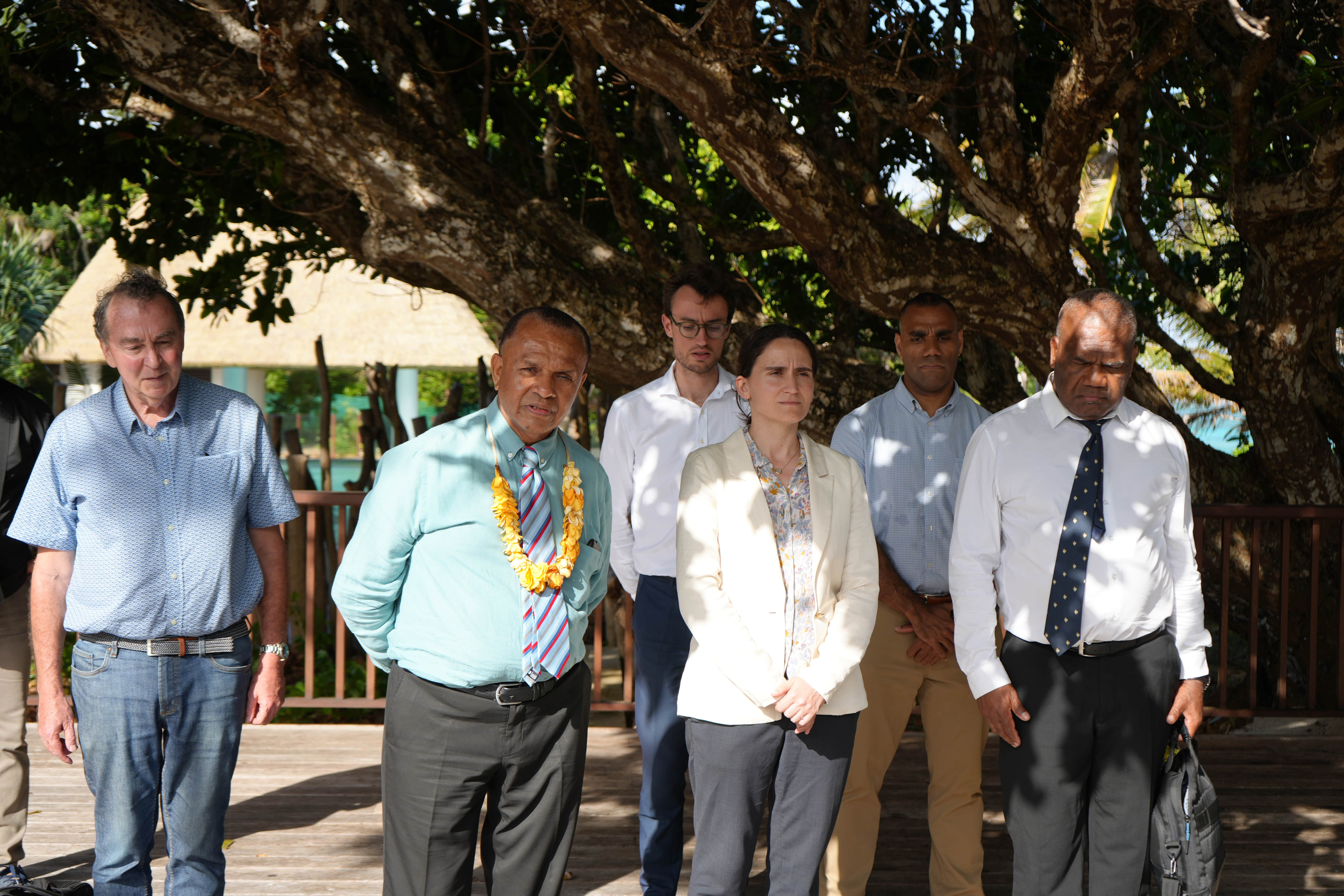 Lors d’une séquence d’abord solennelle puis studieuse à l’hôtel Wadra Bay, Mme DURRIEU s’est montrée particulièrement attentive aux projets présentés par la Province des Iles Loyauté et la SODIL, notamment ceux visant à relancer la dynamique touristique dans les Îles Loyauté, tant dans le domaine de l’hébergement que de la desserte maritime et aérienne. Elle a ainsi eu l’occasion de visiter le complexe hôtelier de Wadra Bay, symbole du potentiel touristique de la région.